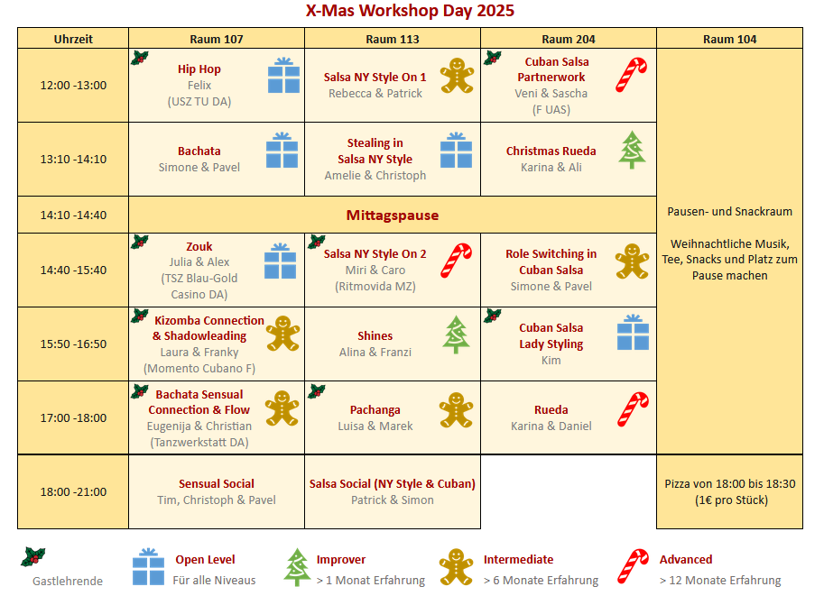 Am Samstag, den 13.12.2024, organisiert salsatude den spenden-basierten Xmas Workshop-Day!